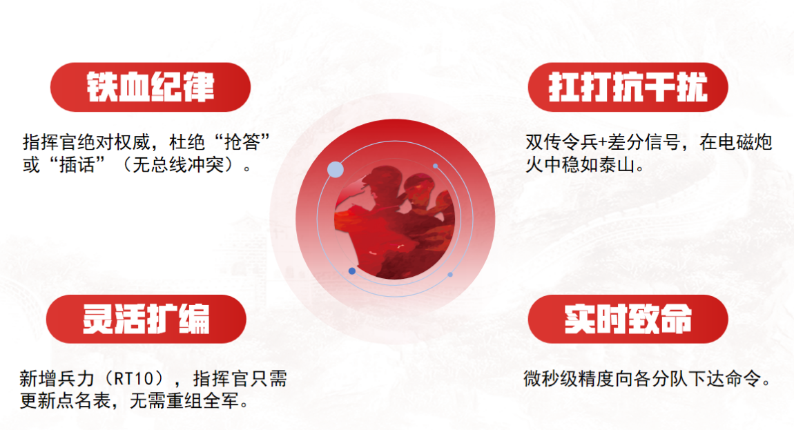 敌方释放电磁干扰,A线传令兵“耳聋”——指挥官立即切换B线,攻击指令继续下达,战斗毫秒级恢复。