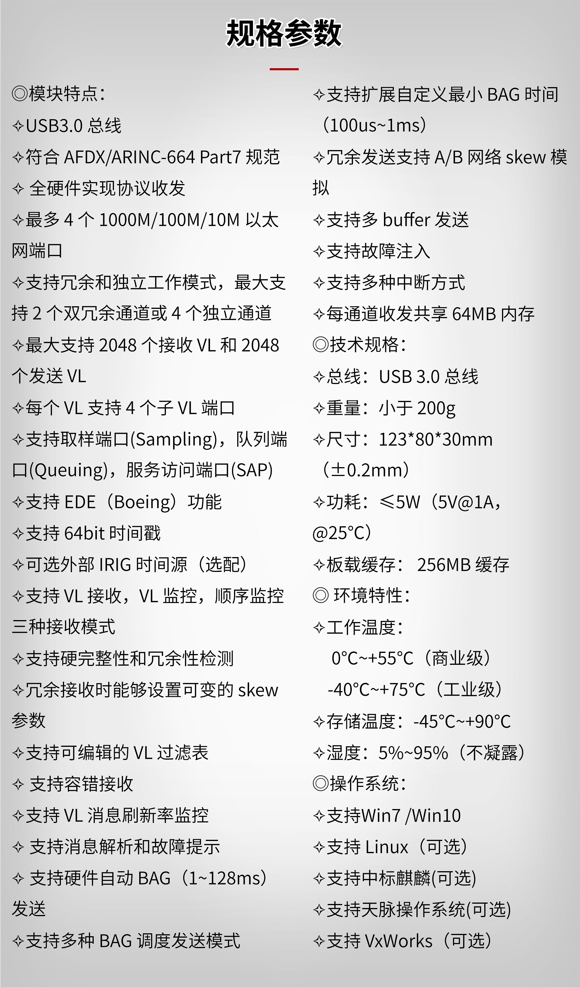 USB-AFDX/ARINC664仿真板卡